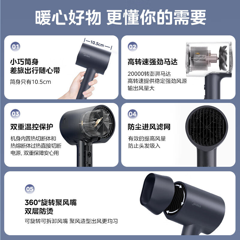 美的吹风机家用负离子大风力护发快干电吹风筒学生宿舍便携礼物 - 美的个人护理旗舰店