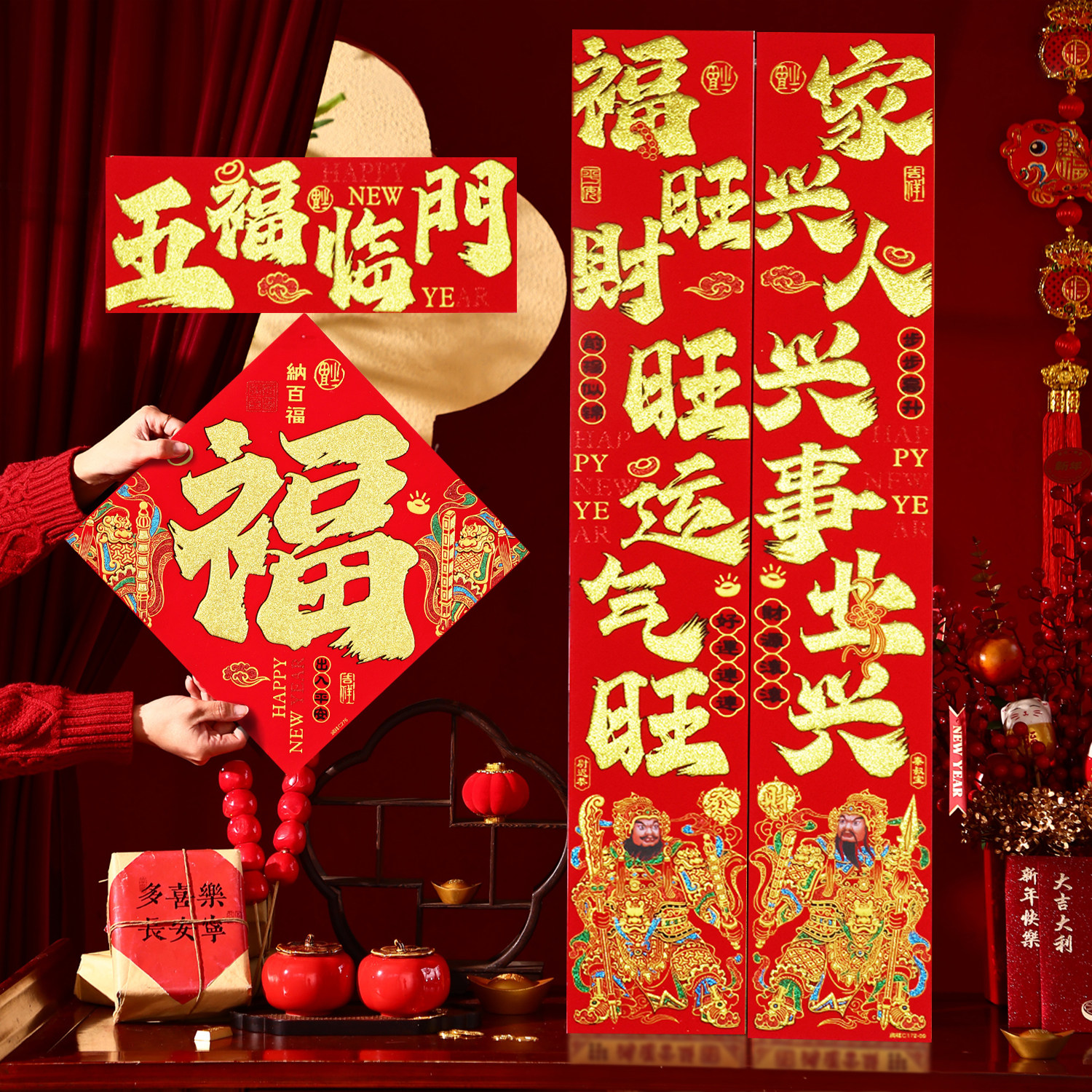 您的位置:优特荟  >   >  对联2026马年新款春节新年装饰过年福字门贴大门门神植绒春联背胶