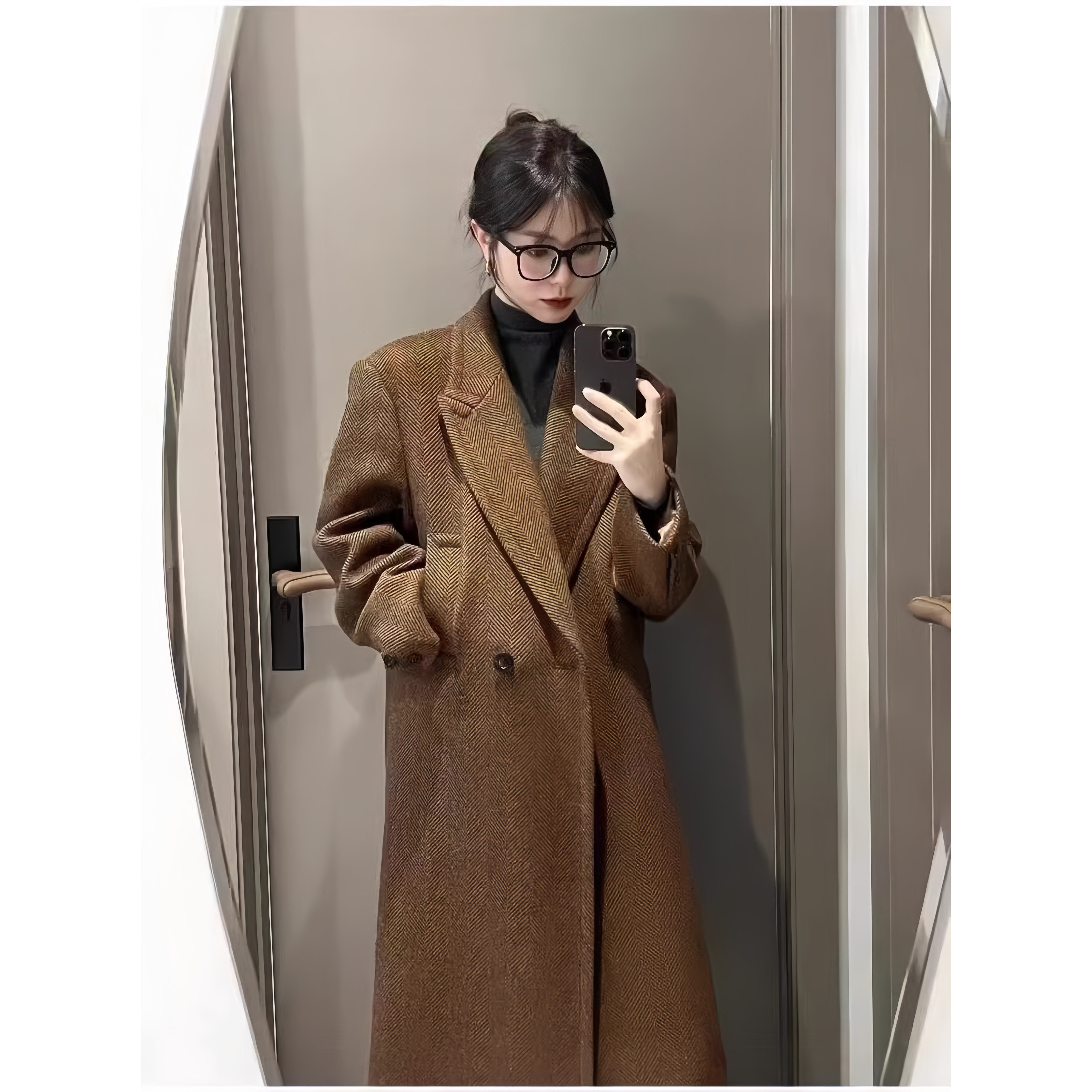 【高档礼盒装】H5M2025秋冬韩系高级感中长款气质羚羊绒加厚大衣 - 小懒猫美衣66号店