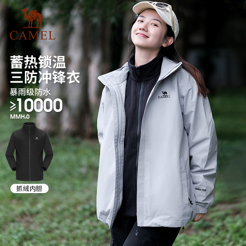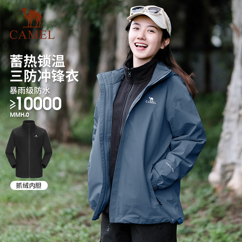 骆驼山系冲锋衣女抓绒三合一户外2025新款可拆卸防水登山服外套男 - 骆驼集团旗舰店