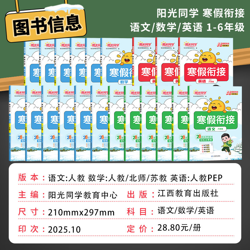 您的位置:优特荟  >   >  2026春新版阳光同学寒假衔接一二三四五六年级语文数学英语人教版北师大苏教小学生寒假阅读口算练字帖专项训练同步复习预习作业本