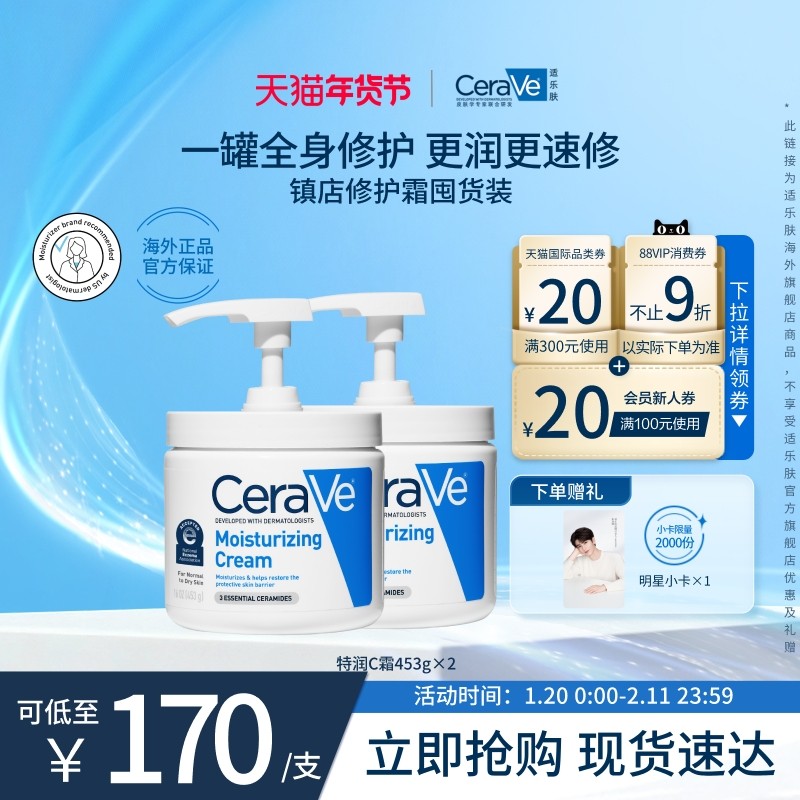 【海外店】CeraVe适乐肤C霜罐装保湿面霜补水滋润乳液男士女士 - CeraVe适乐肤海外旗舰店