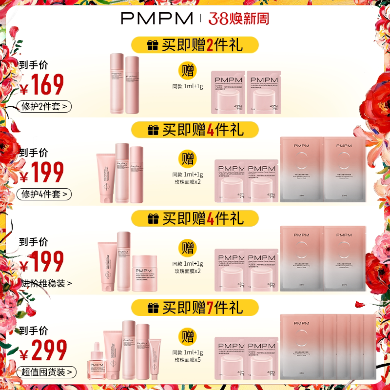 【立即抢购】PMPM玫瑰粉盾水乳护肤套装保湿舒缓褪红修护屏障敏感 - PMPM旗舰店