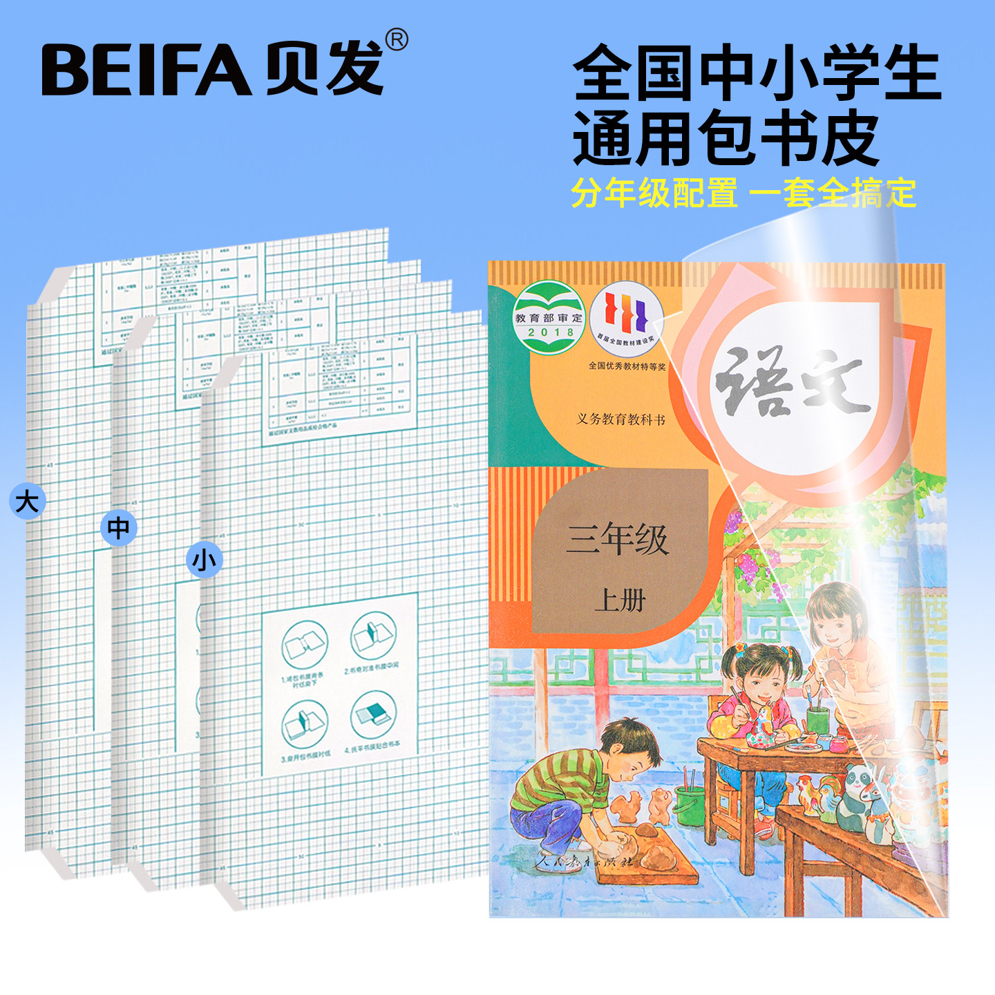 贝发书皮自粘磨砂加厚书皮书套 16K文具包书皮纸小学生一二三年级包书膜一体化书壳全套塑料防水课本书膜 - BEIFA旗舰店