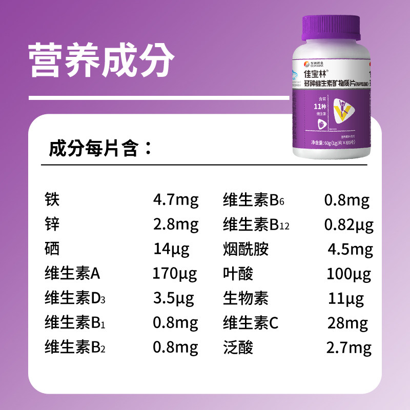 您的位置:优特荟  >   >  东诚药业佳宝林多种维生素矿物质片成人复合多种维生素草莓味
