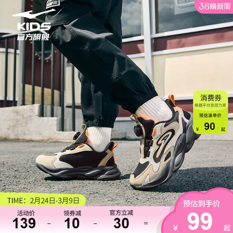 晨星|鸿星尔克童鞋男童秋冬革面防泼水儿童休闲老爹鞋旋钮运动鞋 - 鸿星尔克童装旗舰店