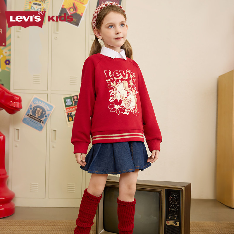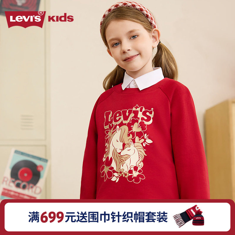 【新年马年】李维斯女童红色卫衣加绒儿童套头衫2026拜年过年衣服 - Levi's童装旗舰店