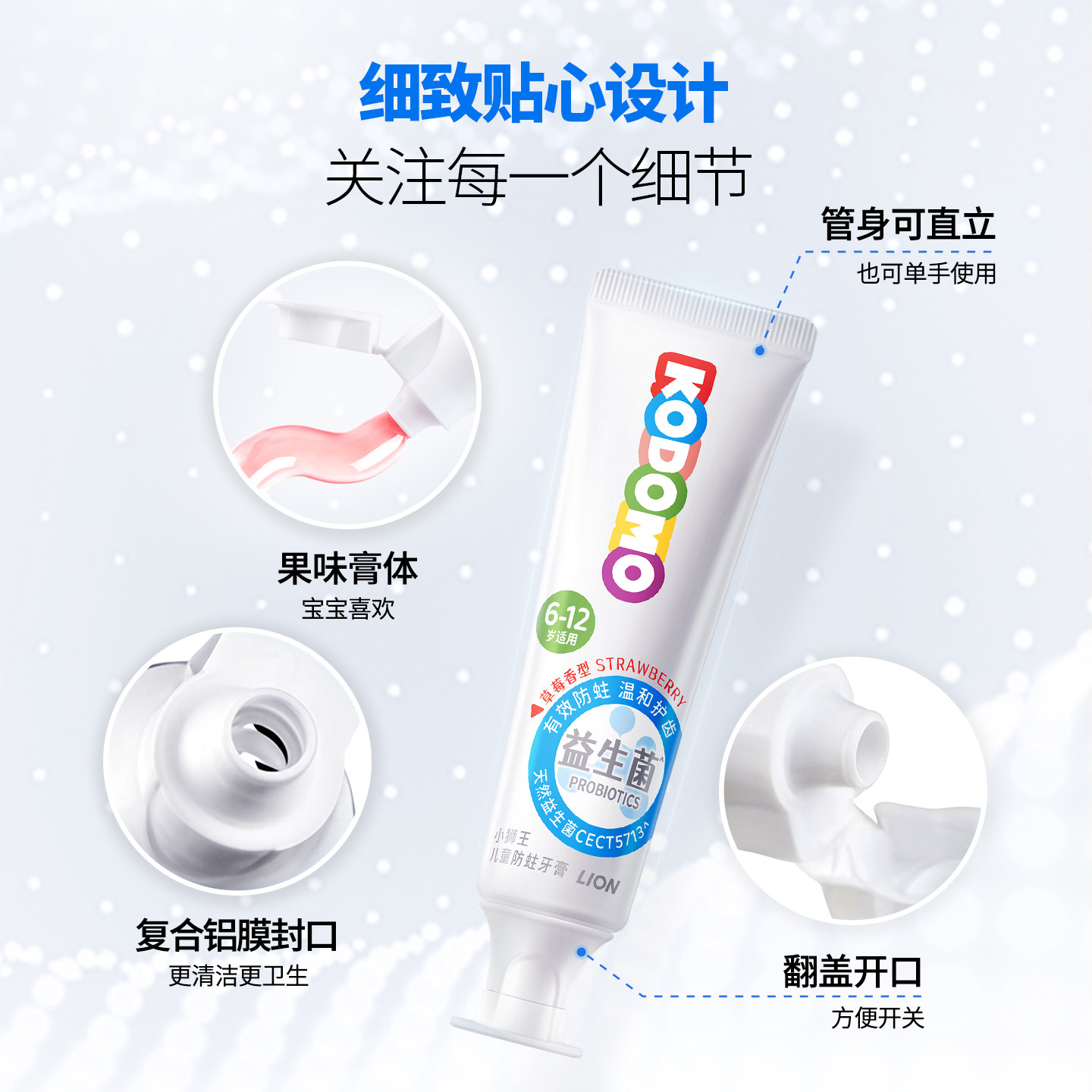 狮王KODOMO小狮王儿童益生菌防蛀牙膏0-6-12岁专用牙膏口腔清洁 - 小狮王旗舰店