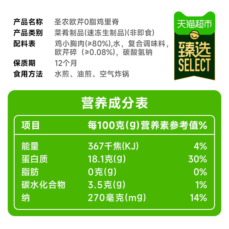【臻选】圣农欧芹0脂鸡里脊鸡排鸡小胸水煎鸡胸肉空气炸锅半成品 - 天猫超市