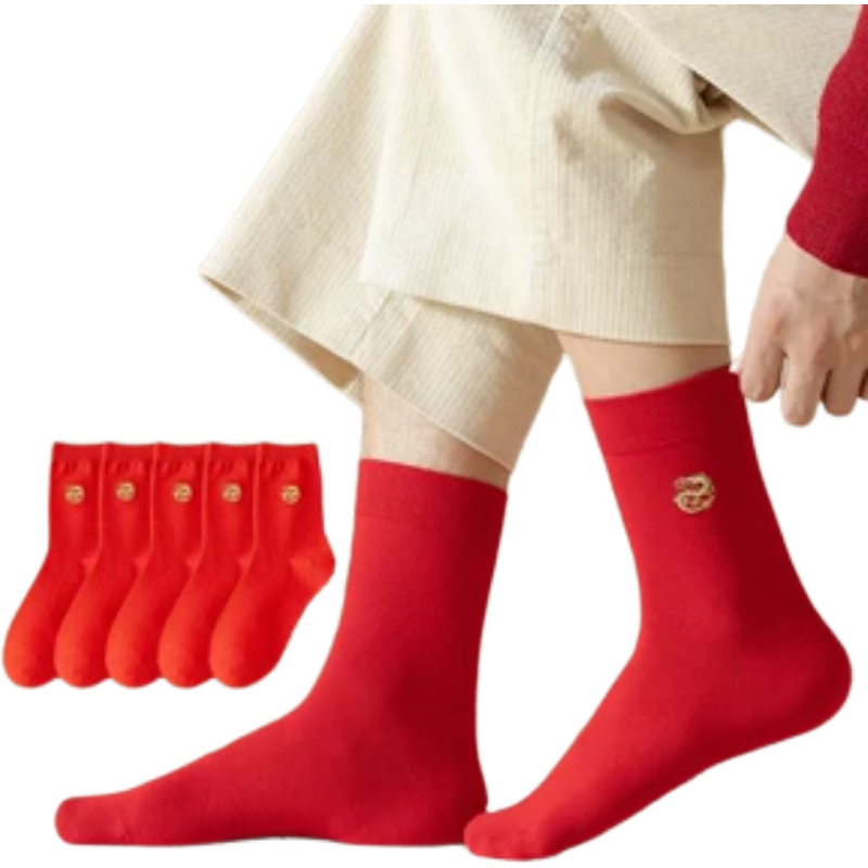 新年好运红袜男女同款本命年红色袜子新年踏好运喜袜凤袜结婚袜5 - 如衣弄旗舰店