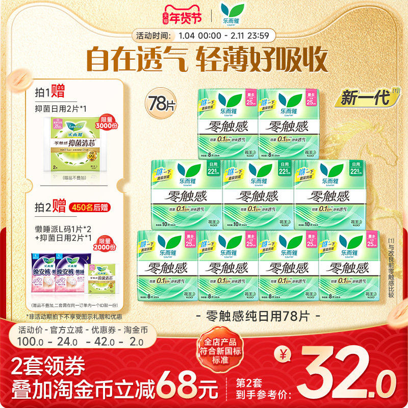 【抢!拍2送毛毯】花王卫生巾乐而雅零触感全周期日夜组合68片 - 乐而雅官方旗舰店