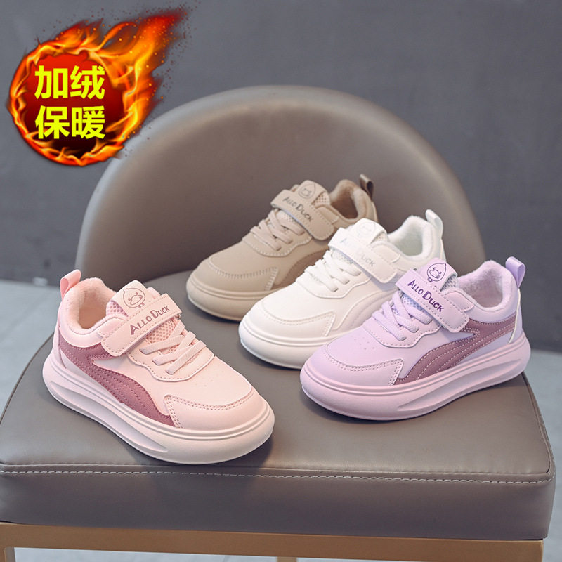 加绒儿童运动鞋防滑休闲百搭平底高帮小男孩皮面板鞋冬季女童鞋子 - 真好超市001