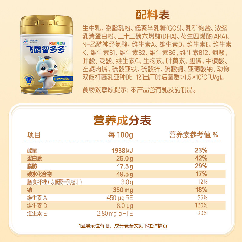 飞鹤智多多学生营养奶粉650g*2儿童牛磺酸CBP高钙益生菌 - 天猫超市