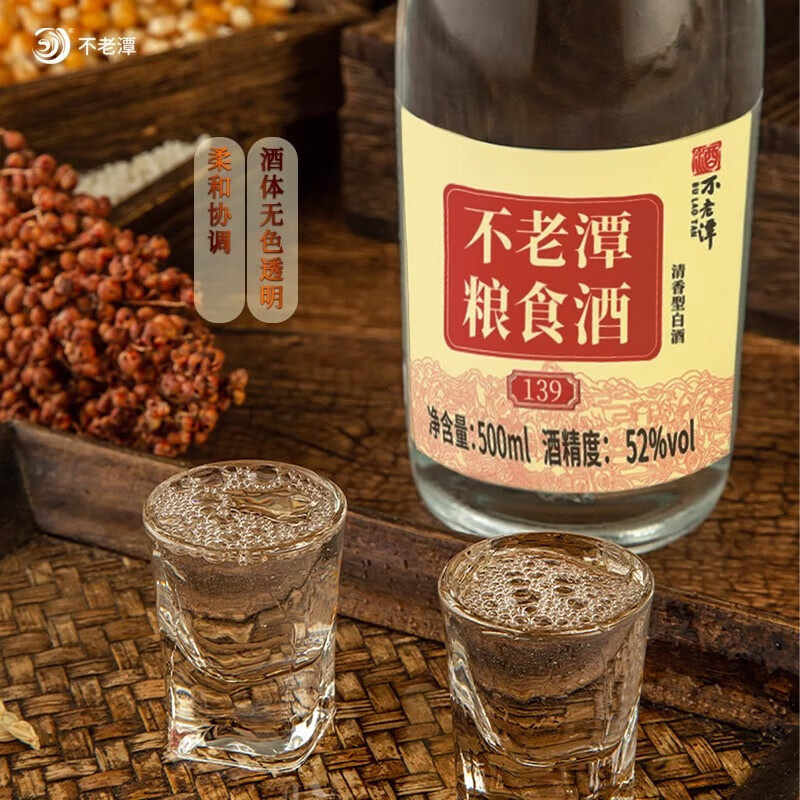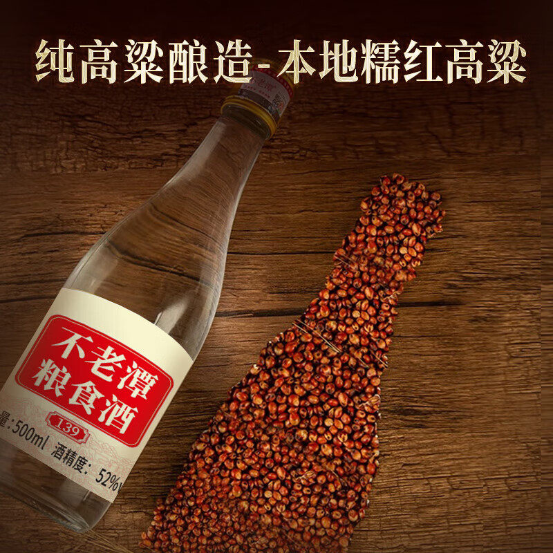 不老潭清香型白酒52度高粱酒纯粮食酒泸州高度白酒光瓶口粮酒自饮 - 不老坛酒类旗舰店