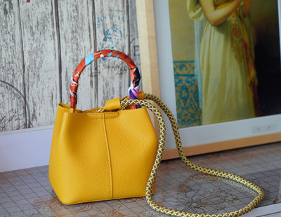 时尚质感手提,手工编织包带,舒适手感,缓解疲劳,双重肩带,百变造型,同时配有丝巾点缀,鲜丽的色彩条纹,彰显时尚个性,在时尚和生活中找寻平衡点。