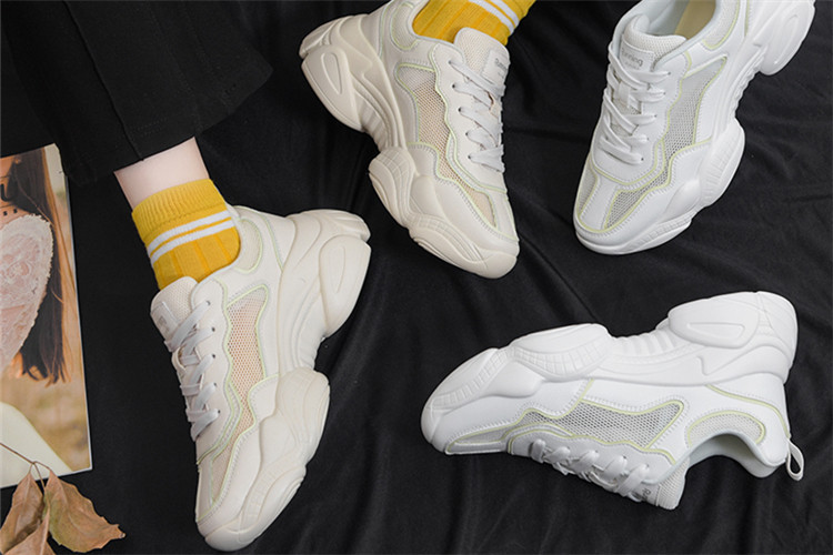 时尚大热的厚底老爹鞋款式能够瞬间增高,让你拥有高挑的身材。荧光条纹设计可以说是趣味满满又炫酷十足。采用坚韧的马克线用心缝制。舒适柔软的超纤材质,让你走多远都不觉得累,特意搭配透气的网纱,保持鞋内的干爽,螺旋状的大底非常的防滑稳健。