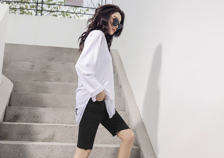 宽松版型的剪裁可以达到显瘦的效果,而且活动起来没有束缚感,配合上五分裤长的设计,多了些休闲简约的造型感。