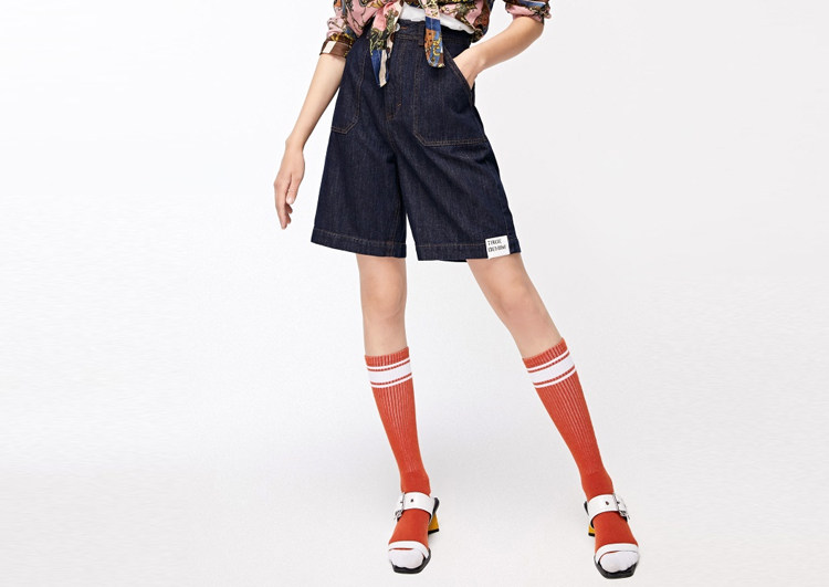 五分裤上身既可以遮掩大腿部分的小肉肉,而且利落的版型剪裁也多了些干练时髦的造型感。
