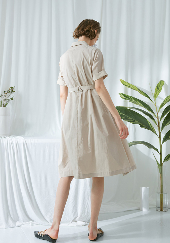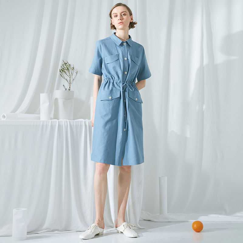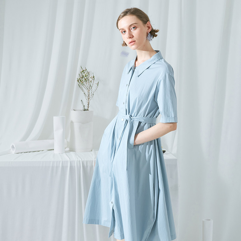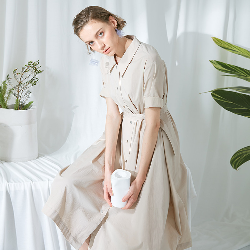 无拘家这款衬衫裙一共有两个颜色,高级灰色系的浅卡其与浅蓝灰柔和而平静,雅致而有韵味;质地轻薄的棉混纺织物清爽透气、坚韧且有弹性,两者相遇,更添些出世脱俗的清冷感,无论日常还是上班,穿着都十分的清爽给人一种大气的感觉。