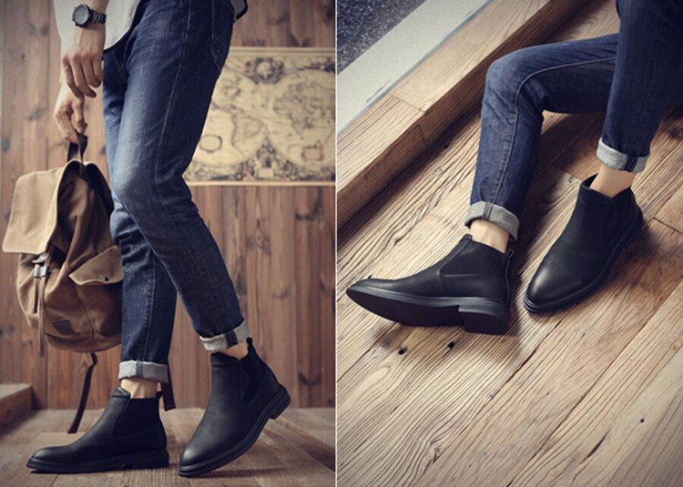 休闲场合:牛仔裤+短靴皮鞋