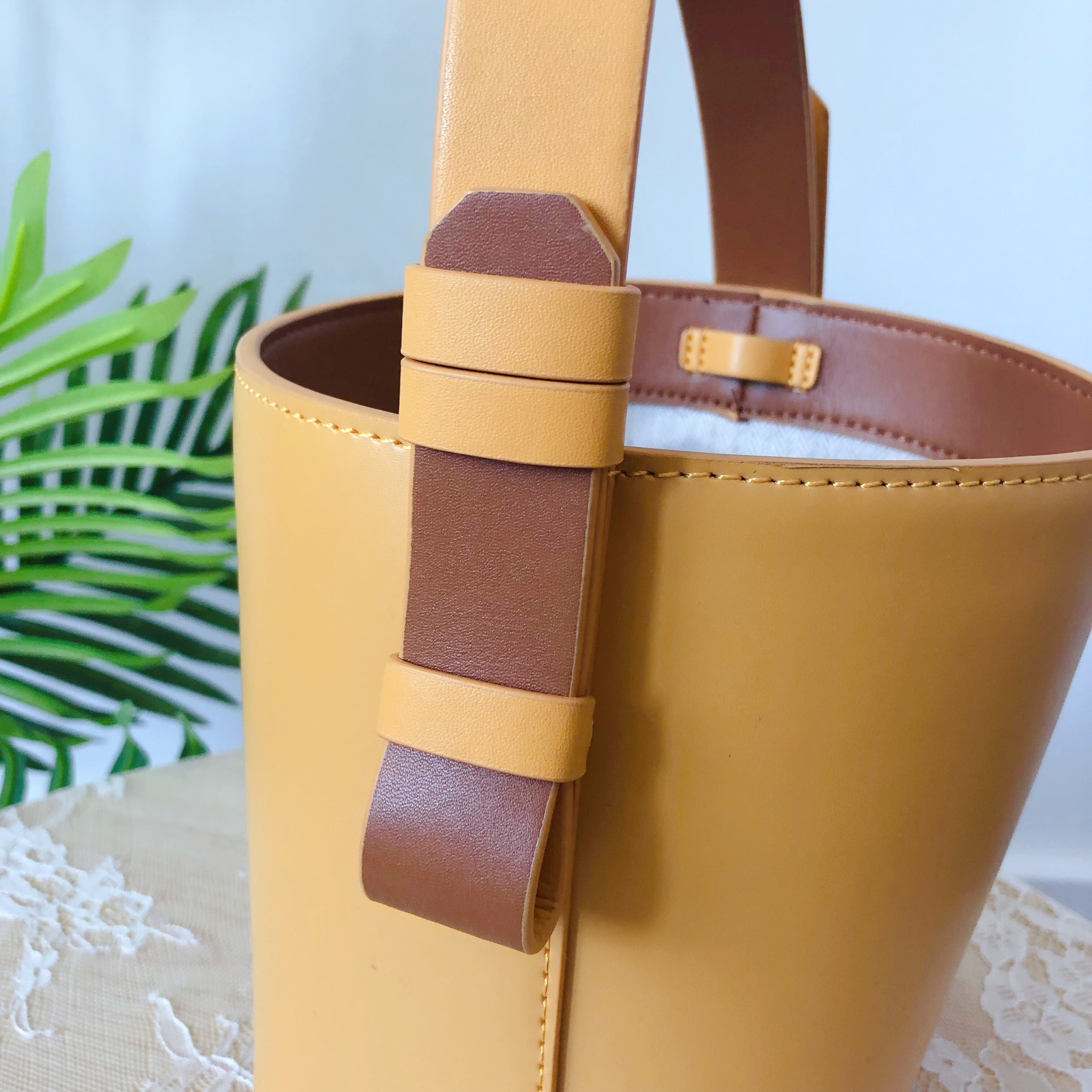 来,让你们瞧瞧这款包包的实用性吧,都是这款蒲公英黄水桶包包,夏天的时候sisi小姐姐用它来衬托波点印花连衣裙,浪漫的波点印花有了这个俏皮颜色的水桶包点缀,是浪漫又甜美的少女感觉,通勤或者约会都适合。
