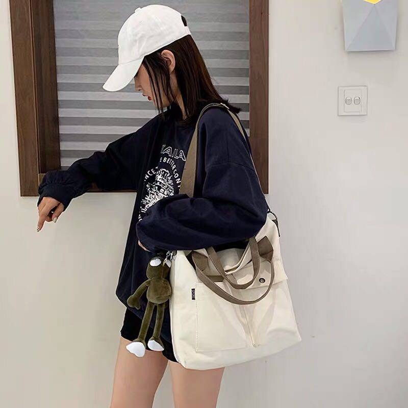 容量大的帆布包搭配卫衣,就是轻松随意的休闲风。