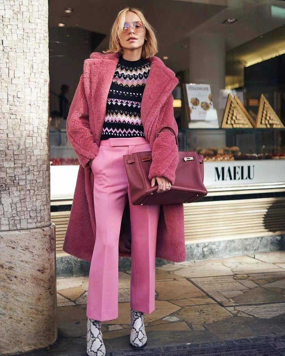 如果觉得没办法区分包包和服饰的风格,那可以用最基本的搭配法则:包包与衣服的颜色相近。包包可以用身上穿搭的其中一种颜色。