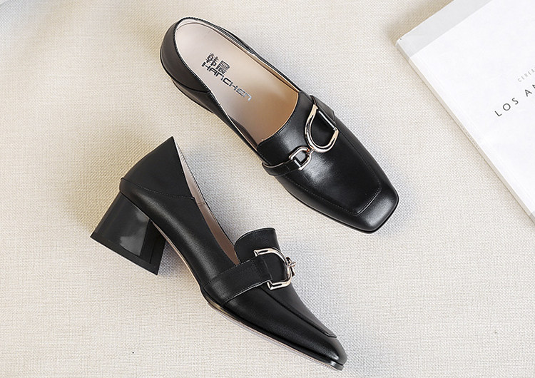 第一、方头中粗跟英伦风皮鞋