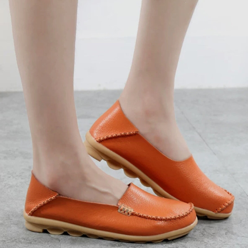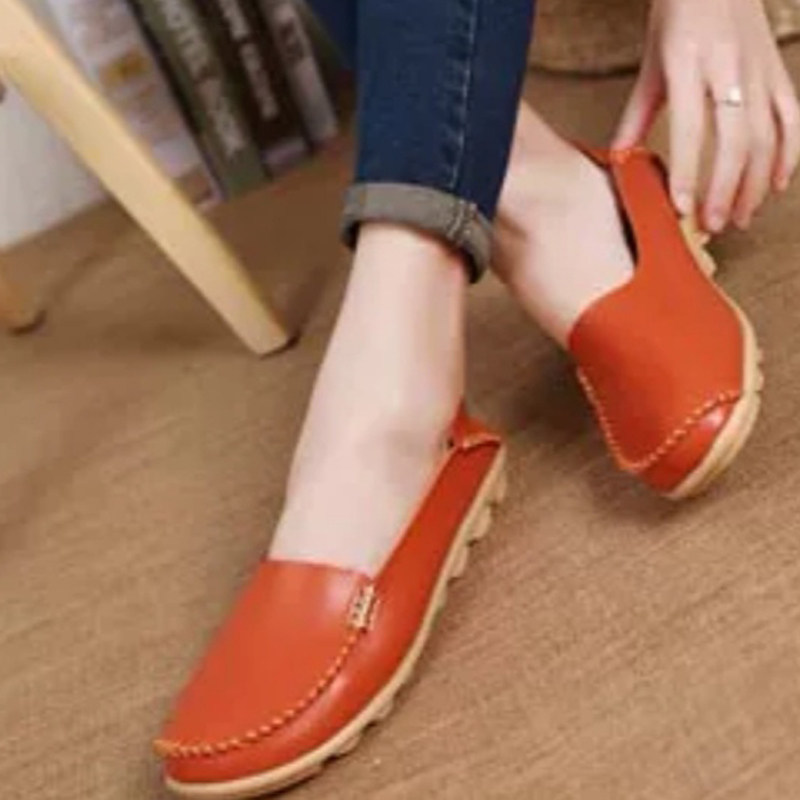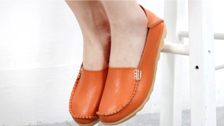 当我还没入手前看到这款桔色的豆豆鞋我真的太激动了吧,我非常喜欢亮色的鞋子,这款真的太显脚白了吧,最欣赏的还是它的设计很简单,但是看上去还是蛮大气的,特别是那搭扣点缀一下不失单调。
