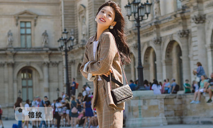 通勤风的修身系带西装,融入了千鸟格纹设计,给人感觉随性大方,端庄优雅。衣服整体的版型比较宽松,配上腰带设计,可以勾勒出独属于女性的腰部线条,同时对臀部曲线起到一个修饰作用。