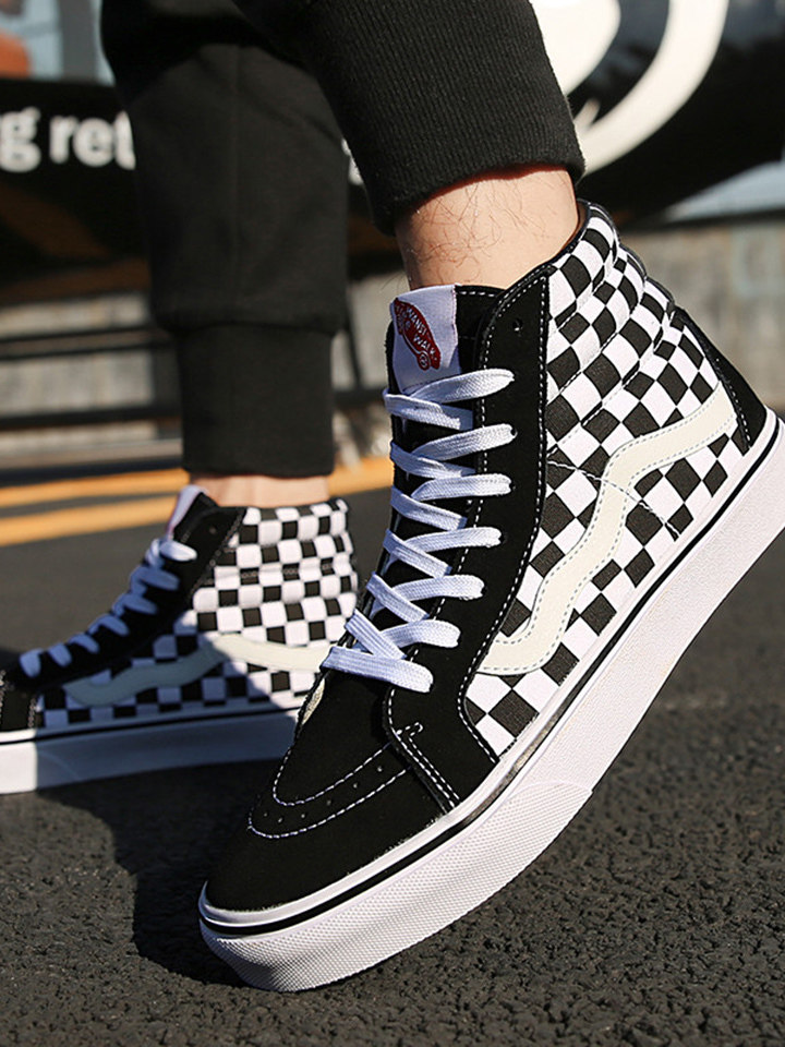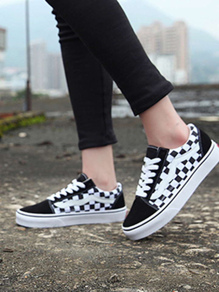 万斯 经典复古格子刺绣帆布鞋