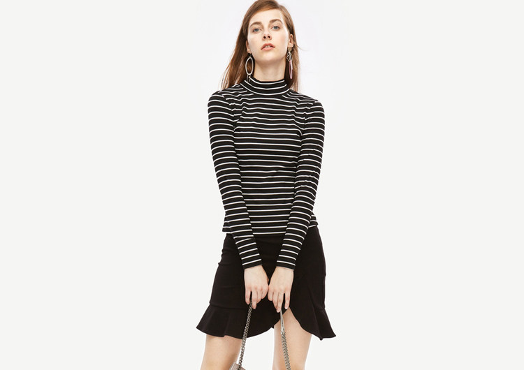 纯棉的这款半高领条纹T,它上身起来随性又俏皮。黑白的颜色非常的简约大方,对于一些比较个性化的搭配来说,也是能轻松驾驭的了。