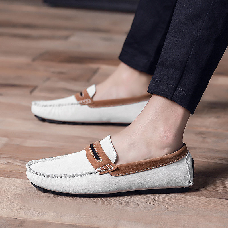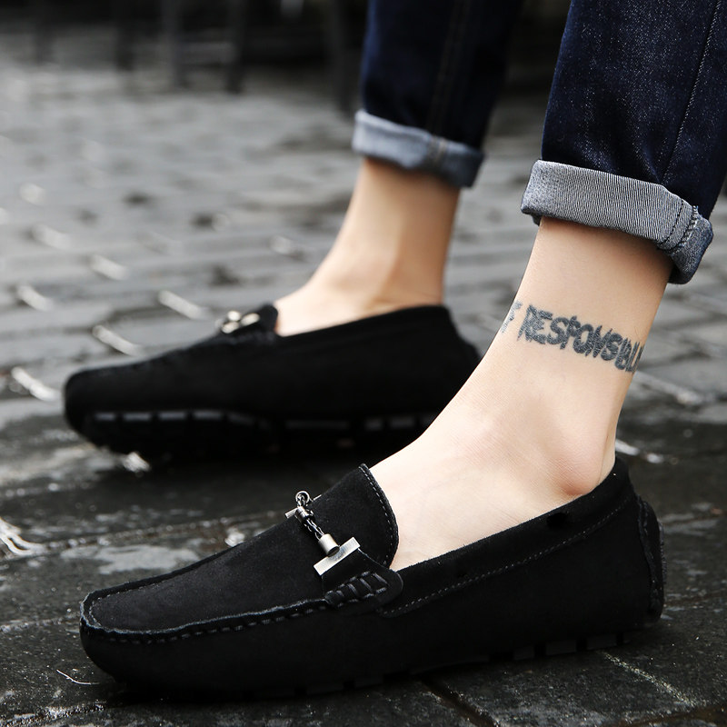 鞋底材质橡胶,休闲豆豆鞋非常舒服,不同的材质和个性能够充分的凸显出整体造型的层次感,运动风范潮流在度启程,亲肤内里PU材质鞋底,轻度减压性能良好提升抓地。