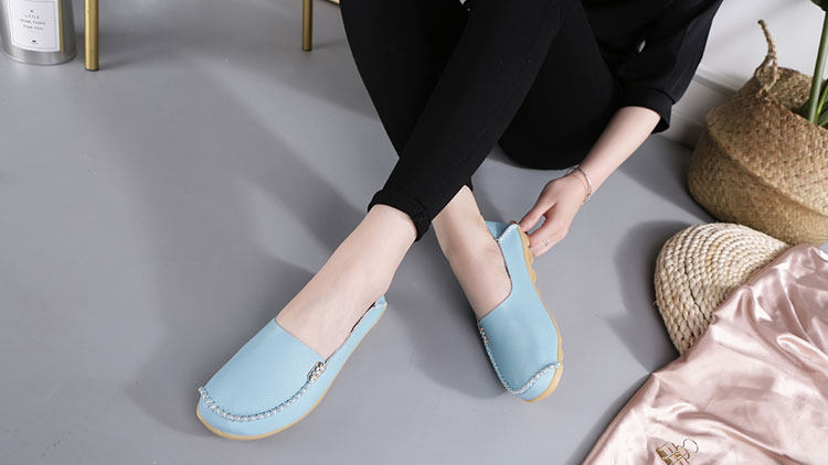 总结: 唐卓家的这款豆豆鞋整体来说是很满意的,清新的色调, 表现的是淑女的气质。柔软透气的真皮材质,给双脚最好的舒适感,还很透气的呢!休闲时尚的风格,赶紧备好度过时尚的秋天。