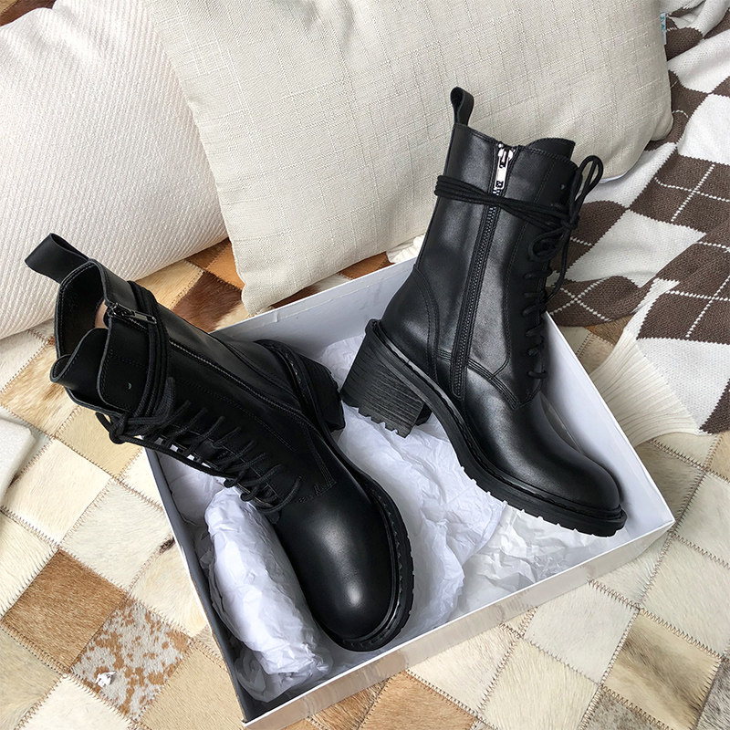 每年都是最开始流行马丁靴哦,每个女孩子都喜欢穿的靴子,这款是那种暗黑风的马丁靴哦,特别的帅气有型,侧面嗲有拉链穿脱方便,配有鞋带是马丁靴的亮点哦,可以把鞋带跟鞋筒绑在一起,很贴合脚型哦。