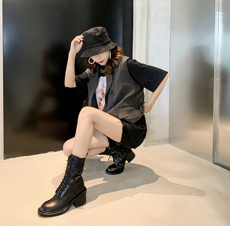 马丁靴能够这么受到欢迎,除了美观好搭,更重要的是修饰腿型的效果突出,高帮的设计还能还可以放入增高鞋垫,就算是一米五的矮个女生都能穿。