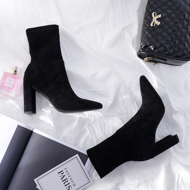 通常来说,高跟袜靴是和尖头鞋型常在一起组CP的。既能凸显气质,也为整体造型增添精致感。众所周知,高跟鞋走路可不是那么稳当,但是展现女人味可是低跟鞋比不了的,再加上尖头鞋型还有显瘦显腿长功效。