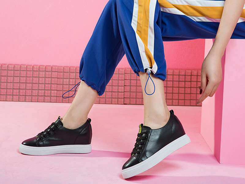 以时尚的街头风为灵感,牛皮材质,穿起来不仅透气还舒适;厚底+内增高,使鞋跟总高度达8.5CM,从视觉上改善你的身材比例,勾勒腿部线条。