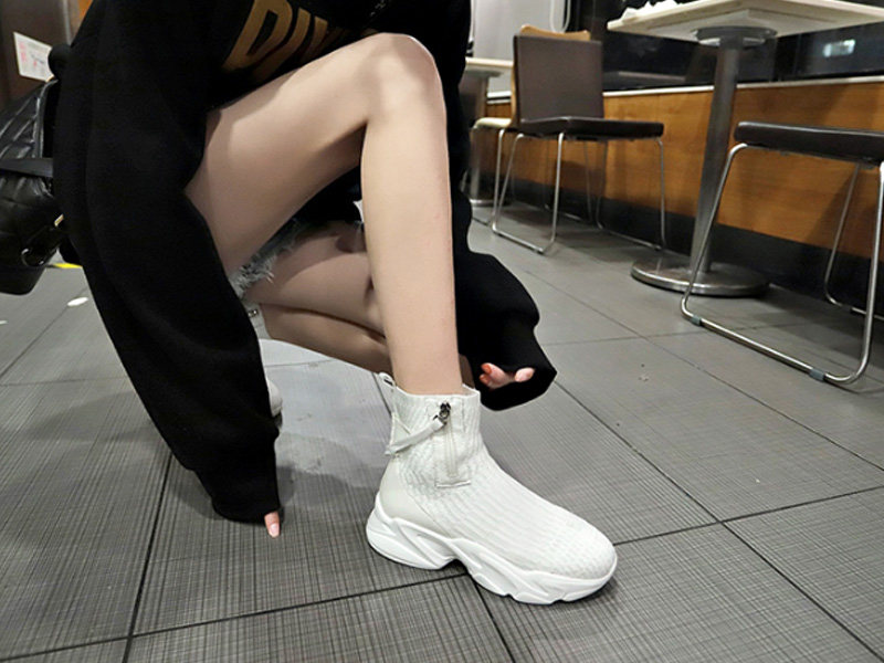 中筒袜靴设计,修饰你的脚踝线条并让它看起来有显瘦的效果,在视觉上轻松拉长腿部线条。休闲运动的风格和舒适的鞋底材质,放松你的双加,织物鞋面用料,让你面对炎热夏天也没有压力。拉链加设在鞋筒的地方,便于日常的穿脱。