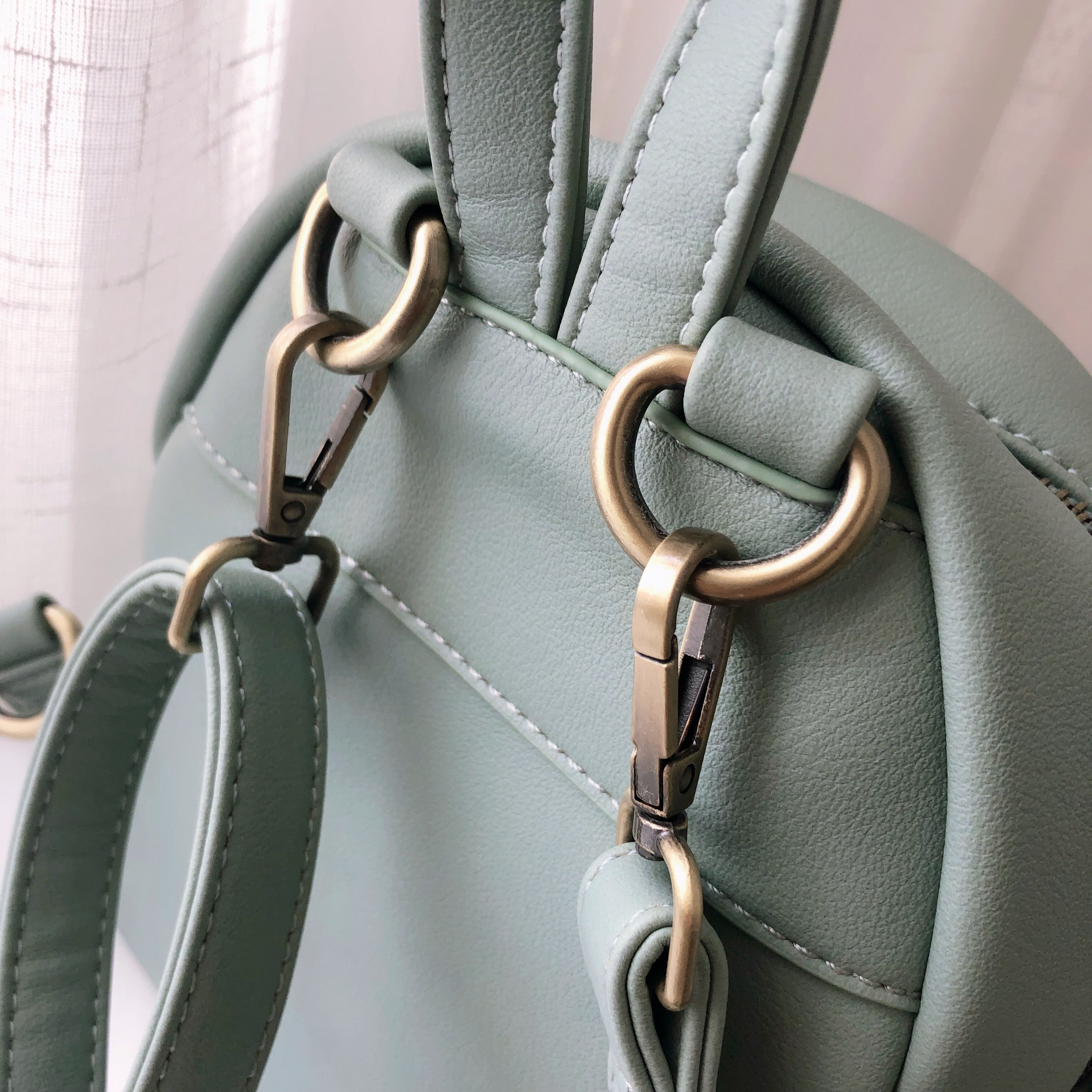 来,我们和这款双肩包来个亲密的接触吧!小细节处的设计也是看得出设计师对这款包包的用心设计,磨砂质感的五金金属扣,会更有档次感哦!双肩的金属锁扣是可自由拆御的,所以在使用这款包包的时候也是可以营造不同的携带方式的呢,比起其他的双肩包灵活性更强,更有趣,是不是。