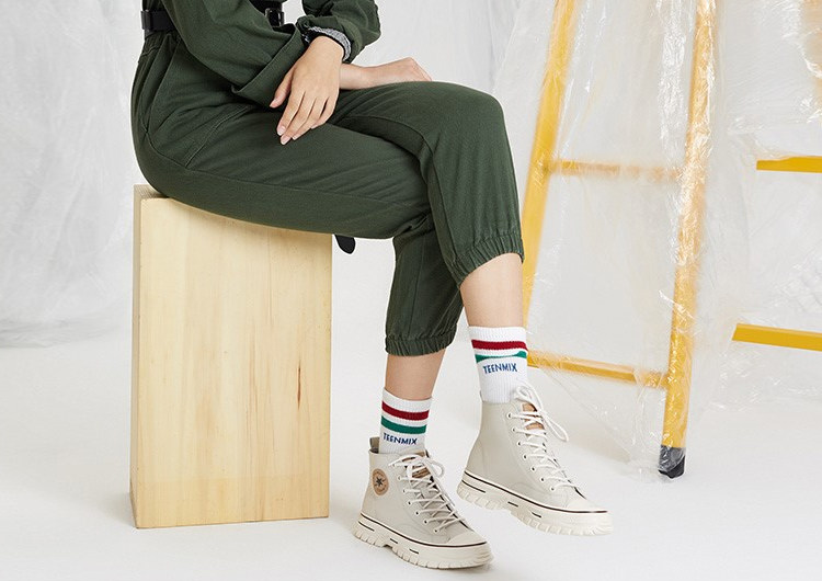 厚底的设计行走自带显高的效果,而短筒的设计则让马丁靴多了些潇洒利落气息,配合上交叉绑带的处理,打造出时尚大气的造型感。