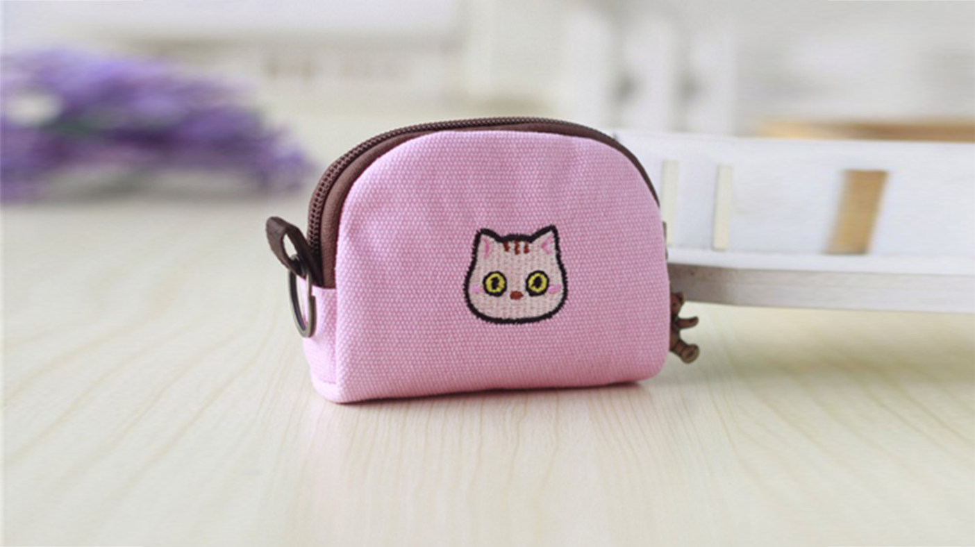 点缀猫咪刺绣的迷你零钱包,甜美可爱真吸睛