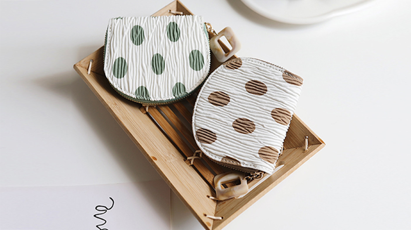 包裹着雪纺的拉链式零钱包,圆点印花可爱爆棚