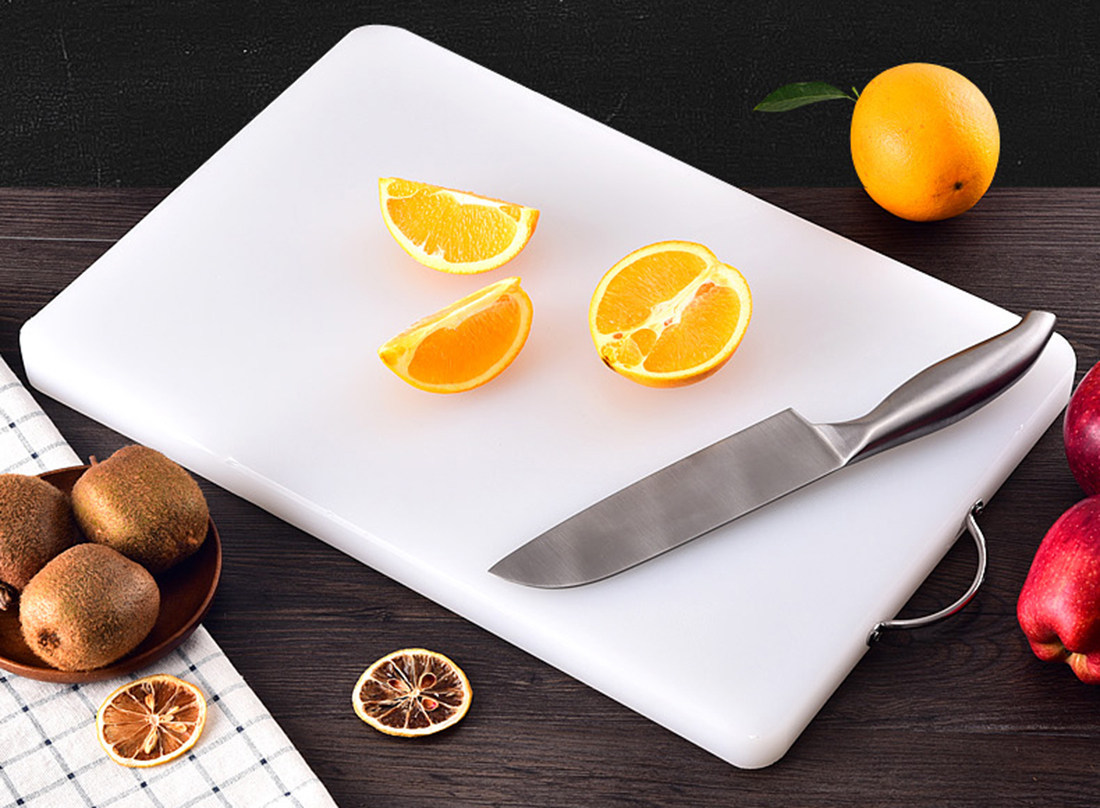 接下来介绍的就是这款塑料砧板,塑料材质既不吸水也不容易变形,切菜不伤刀。另外,塑料还有耐腐蚀和韧性强的特质,清洗起来很方便,多种食材过渡依然有效防霉,耐用更长久。