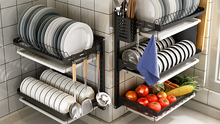 这款置物架可调节卡槽,方便清洗。大容量每层可独立使用。厌倦杂乱的厨房,现用一架收纳,瞬时嘈杂回归为舒适宁静。加深卡槽设计,放置更平稳。大小碗可放,弧形卡扣设计,竖向收纳更沥水。简易镂空设计,沥水透气。取放刀具厨具防刮伤,使用更放心。