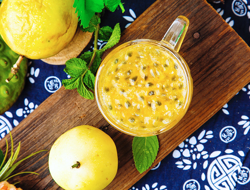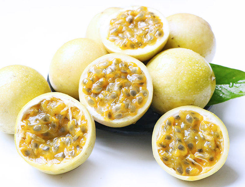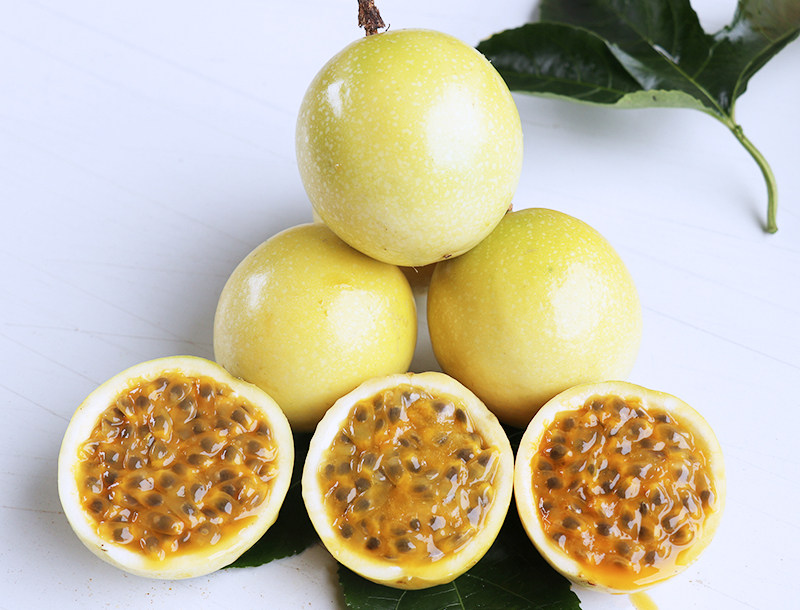 百香果不仅香气馥郁,成为百果之王更是因为它丰富的营养价值。每颗百香果中的维C含量≈8个橙子,维E含量≈15个苹果,还含有17种氨基酸,和丰富的钙、磷、铁等165种对人体有益的物质。