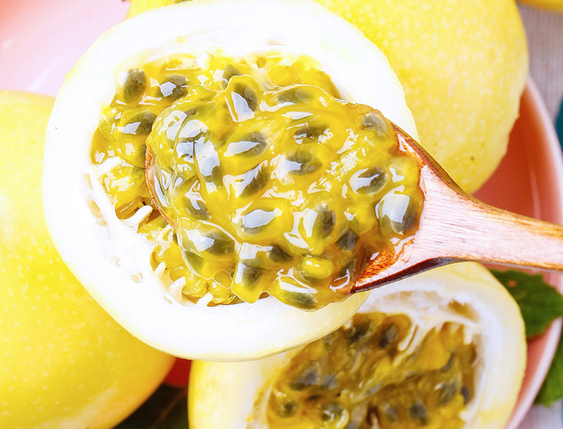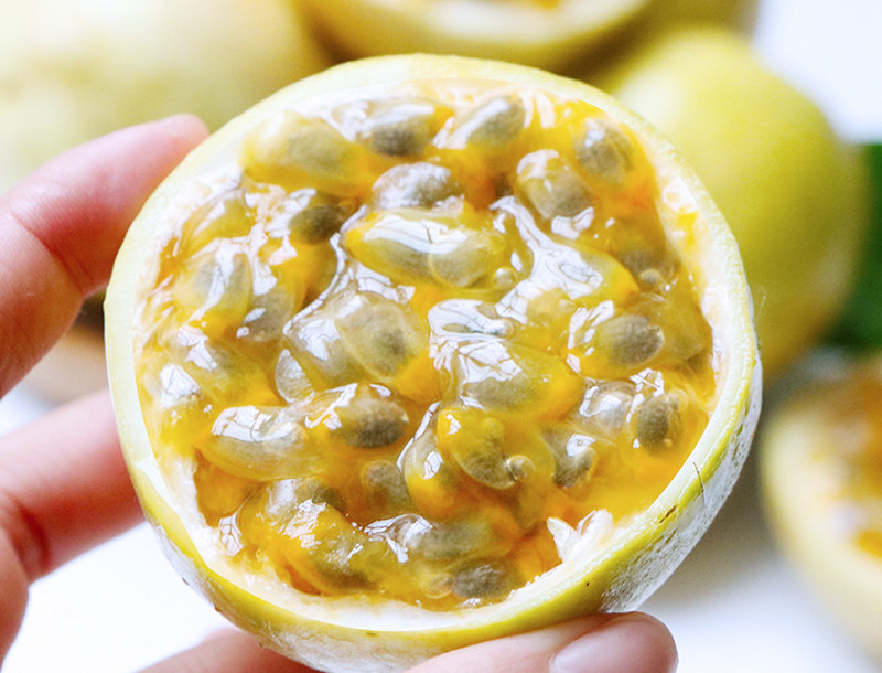 说起百香果,第一直觉是紫色外皮,酸得浑身起鸡皮疙瘩的滋味。但你吃过这种纯香甜的百香果吗?打开即食,自带蜂蜜味。外表金黄色,芬芳馥郁,纯甜不酸。它正是很多女生的最爱:黄金百香果。
