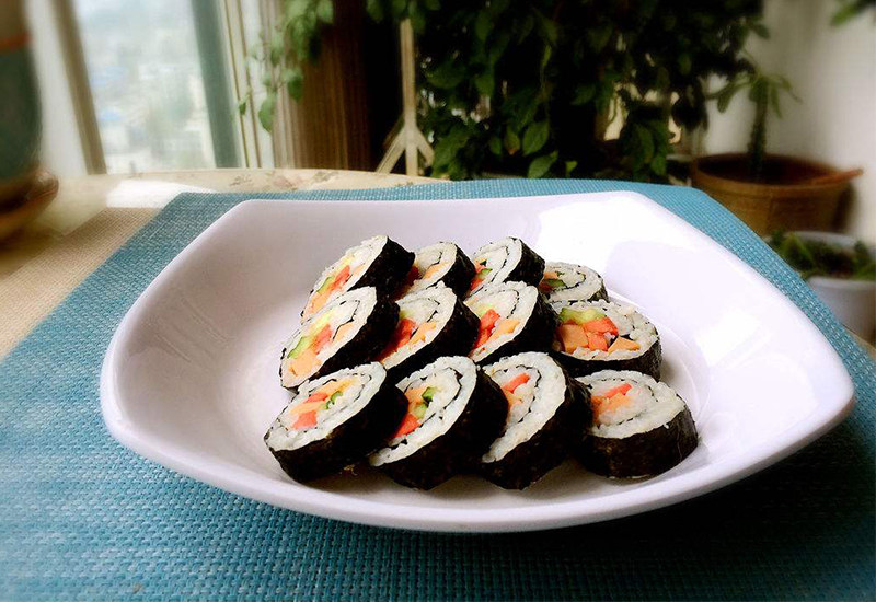 寿司里面除了可以加一些自己喜欢的蔬菜比如胡萝卜玉米粒啥的,也可以加鱼肉~金枪鱼和寿司就是绝配!