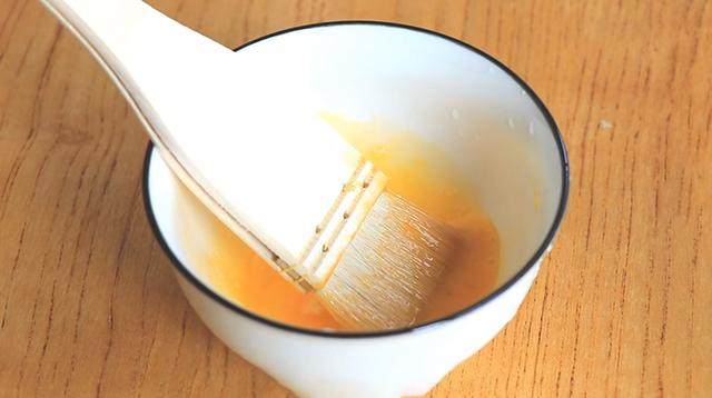 13、碗中打入一个鸡蛋黄,鸡蛋黄里面加入一点清水,搅拌成蛋黄水。