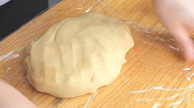 9、馅料我这里冷冻了45分钟,把馅料包入饼皮,用虎口慢推封口。